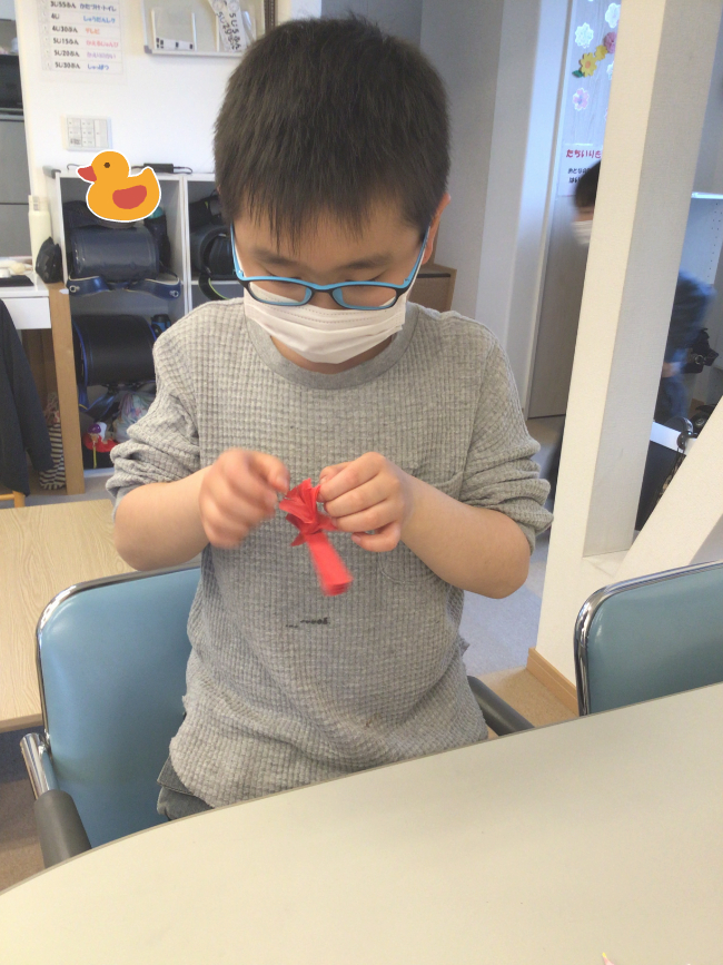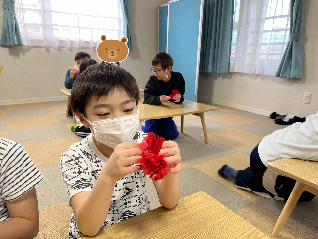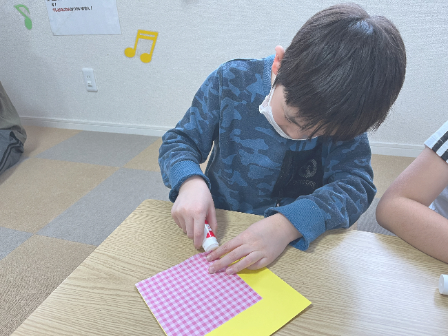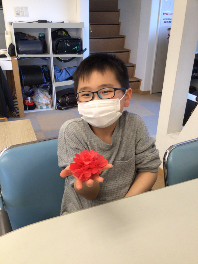 新着情報 NEWS ★母の日製作★【放課後等デイサービスきらら篠田】 2022.04.28 こんにちは! 放課後等デイサービスきらら篠田です(*^▽^*)/ 春の陽気が続き、青葉の美しさを 感じる季節ですね♪ 今回は5月8日の母の日に向けて行った 製作の様子をお伝えしたいと思います☆彡 まずはカーネーション作りです。 お花紙は力加減が難しく、 指先を細やかに動かす必要があるのですが、 「難しい~!」と言っていた子も 挑戦してみると黙々と取り組む姿が 見られました! 上手く出来たことが嬉しくて、 「もっと作ってきららに飾れば いいんじゃない⁉」 と言ってくれる子も。。 皆とても上手でした~‼( *´艸`) 次にカーネーションを包む台紙作りです! 糊をつけ慎重に貼っていきます☆ お母さんの喜ぶ姿を想像しながら 作っていく子ども達…(*´ω`*) 真剣に作る様子は「愛」を感じます♪ 最後はメッセージカード作りです(^_^)v 普段お世話になっているお母さんに どんなことを伝えたいのか、 じっくり考えてから書いてもらいました。 「お料理作ってくれてありがとう にした!」と 嬉しそうに教えてくれる子もいれば 普段言えない「ありがとう」を言葉に したことで、恥ずかしそうに職員に カードを手渡す子も…( *´艸`) どんなプレゼントが完成したかはお楽しみに‼ たくさん愛がこもっています♡♡♡ 製作活動は想像力を伸ばし、 手先を使う訓練にもなります。 子ども達一人ひとりが 表現する事の楽しさを味わいながら、 「もっとこうすればよくなるかな?」 「次はこうしよう‼」という ステップアップした活動を 行っていけるように今後も 進めていきたいと思います。 明日からはゴールデンウイークが 始まりますね♪ 皆様、体調に気を付けながら楽しい休日を お過ごし下さい☆彡 放課後等デイサービスきらら篠田 櫻庭でした(*^▽^*)/ 一覧に戻る