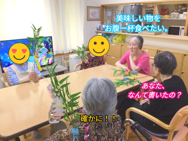 新着情報 NEWS ★星に願いを★【グループホームきらら篠田】 2025.07.17 こんにちは! グループホームきらら篠田です(^o^)/ 今回のブログは6月の外出会と 7月の七夕会についてお伝えしたいと思います。☆彡 まずは6月の外出会では駅前にある Aファクトリーまで遊びに行ってきました(*´з`) あまり天候には恵まれませんでしたが 久しぶりの外出で自然と笑みがこぼれていました( *´艸`) 7月の七夕会では 短冊に思い思いの願いを書き込み 笹の葉を好きなようにデコレーション♪ 現実的な願いや規模の大きな願いなど お互いの願いをネタに話に花を咲かせておりました(*´ω`) 来月は一年で一番大きなイベントである 納涼祭を予定しております。 食事や出し物など用意する予定になっておりますので 皆様に少しでも楽しんで頂ければと思っております。('◇')ゞ グループホームきらら篠田 伊藤 一覧に戻る