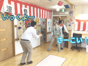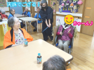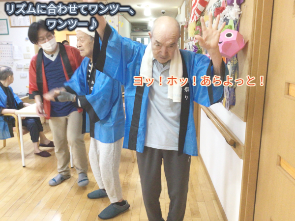 ひげを付けたおじさん達のダンスや仮装した職員と入居者様の寸劇などに