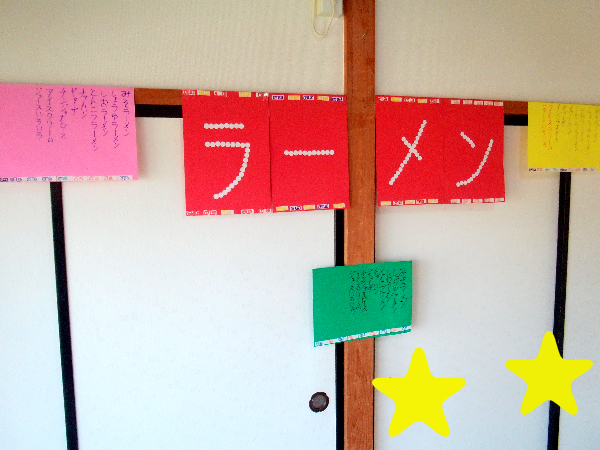 「ラーメンとかトッピングの絵を張りつけてにぎやかにしよう!」
