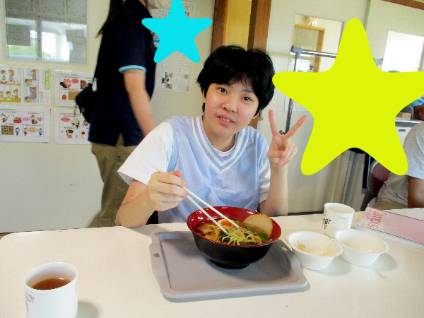 券売機や食券のやり方を教えてもらい、調理クラブのメンバーと美味しくミニラーメンを食べました☆彡