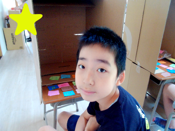 さっそく図案を描き、工作クラブが溜め込んでいる段ボールをゲット!