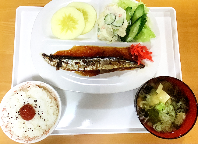 平日に利用者様に共用部の食堂にて夕食提供しています。