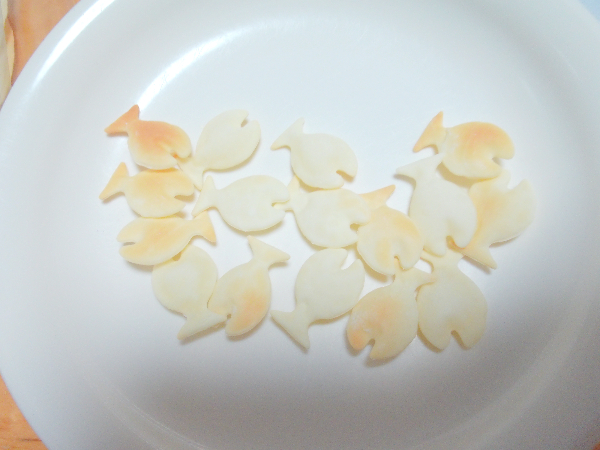皮を重ねてお魚の形にくり抜いて焼くだけでおっとっとに!Σ(゜Д゜)