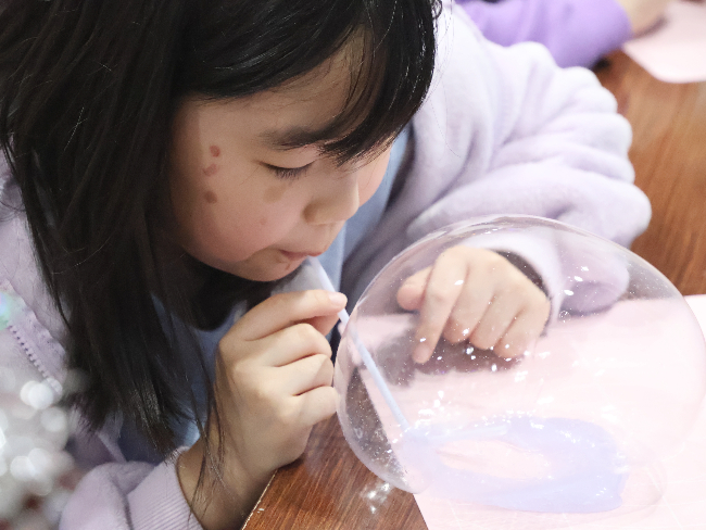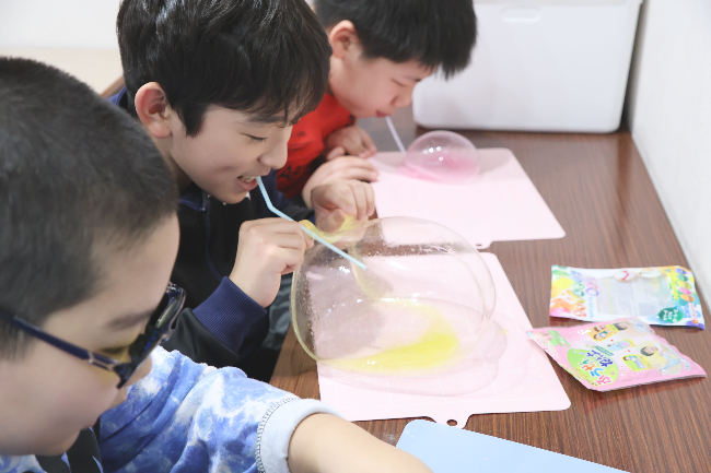 ストローを使って、自分の息で上手に調整しながら吹くと大きく膨らみ