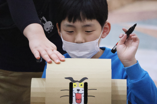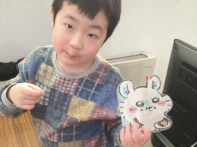 「ぼくは、トムジェリのお面を作ったよ‼」