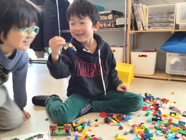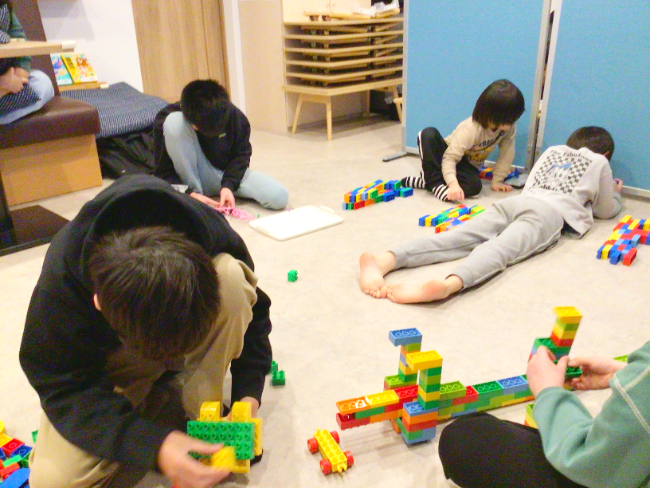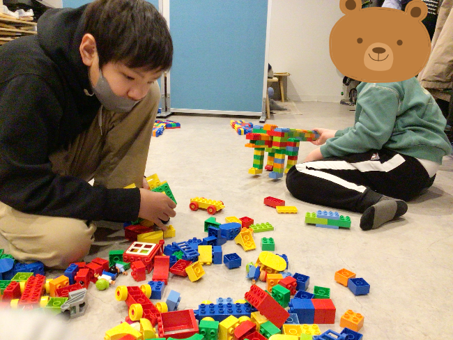 レゴブロックではお友達と相談しながら大きな建物を作ったり、