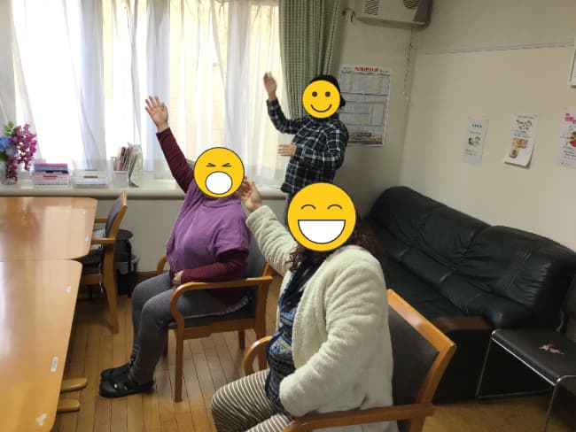 皆様、「私、座って体操する!」「私は立ったままでいい(=^・^=)」と自分の体調に合わせて体操を実施したところ、張り切って体操しているではありませんか!