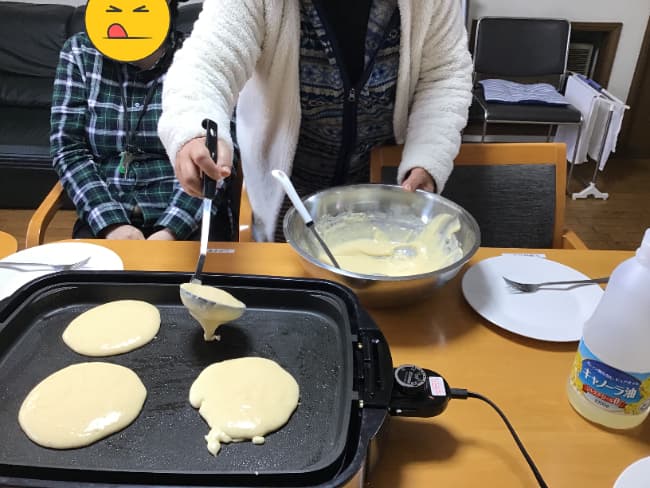 久しぶりのホットケーキに皆さんわくわくされています。