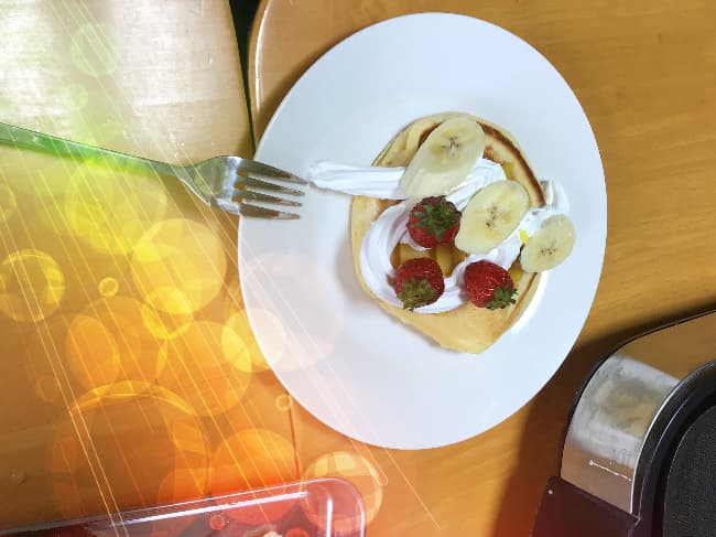 いい焼き色になった所で、自分の焼いたホットケーキのトッピング!!